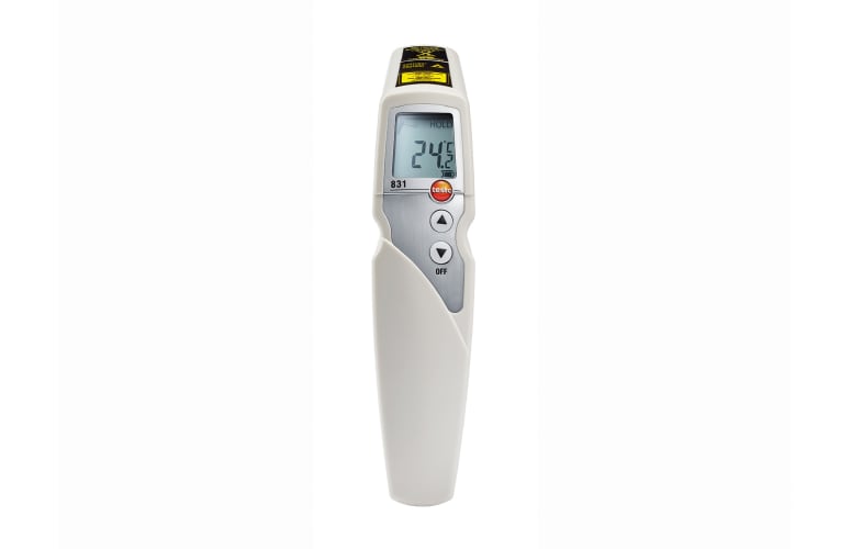 Nunca antes resultó tan fácil realizar el control de temperatura en alimentos: con el termómetro infrarrojo testo 831 podrá medir la temperatura de superficie de puntos individuales y gamas completas de productos en cuestión de segundos y con una alta precisión.