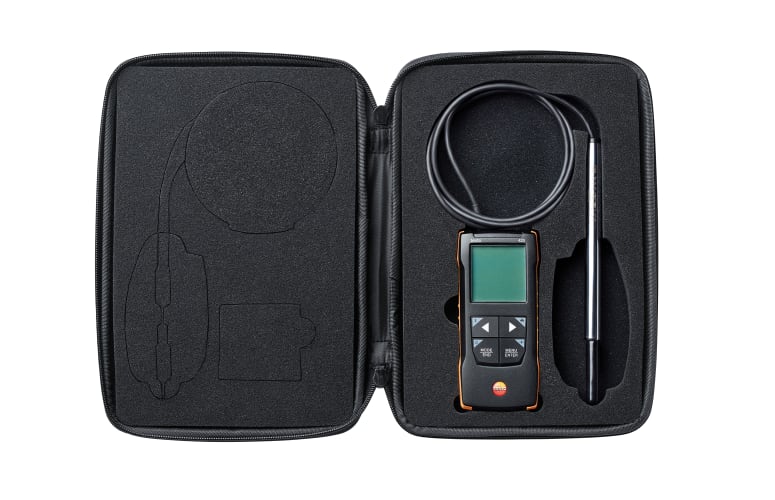 Los sistemas de ventilación y climatización ajustados perfectamente son un factor decisivo para el confort de los ocupantes de los edificios y centros comerciales. Por consiguiente, es importante garantizar con la tecnología de medición adecuada que la velocidad, la temperatura y el caudal del aire sean los más adecuados en conducto de ventilación. En este sentido, el anemómetro térmico testo 425 es el instrumento de medición perfecto. La sonda telescópica incorporada puede extenderse hasta 820 mm y de este modo le facilita el trabajo por encima en zonas elevadas o en conductos de gran diámetro. El anemómetro es especialmente robusto y compacto, efectúa automáticamente todos los cálculos relevantes, tales como el caudal o los valores medios temporales y puntuales. Además, con la App testo Smart podrá configurar el instrumento, ver los valores en tiempo real, guardarlos e incluirlos en un informe para enviar por e-mail.