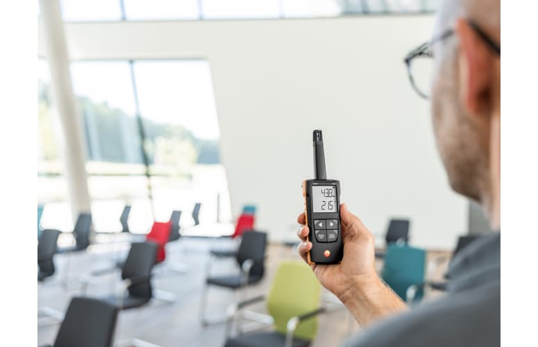 La humedad ambiental relativa y la temperatura ambiente son dos factores decisivos, por ejemplo, para valorar la calidad del aire interior y el nivel de confort. Si quiere garantizar que las personas se sientan bien en recintos cerrados o que predominen condiciones perfectas en los almacenes, el termohigrómetro testo 625 es la elección ideal. El testo 625, además, calcula automáticamente la temperatura del punto de rocío y de bulbo húmedo para obtener resultados precisos, sencillos y rápidos. El valor medio temporal y puntual también se muestra inmediatamente. Y con la App testo Smart podrá aprovechar el termohigrómetro al máximo: