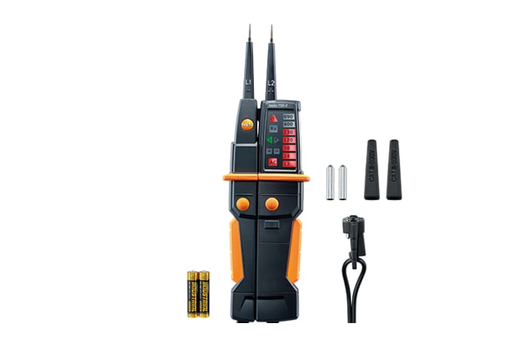 Con pantalla LED visible 360º y tecnología de fibra óptica exclusiva: con el comprobador de tensión testo 750-2 determinará de forma segura y cómoda la presencia o ausencia de tensión en las instalaciones y equipos eléctricos. Comparado con el comprobador