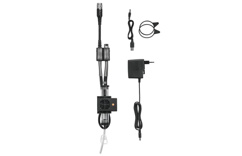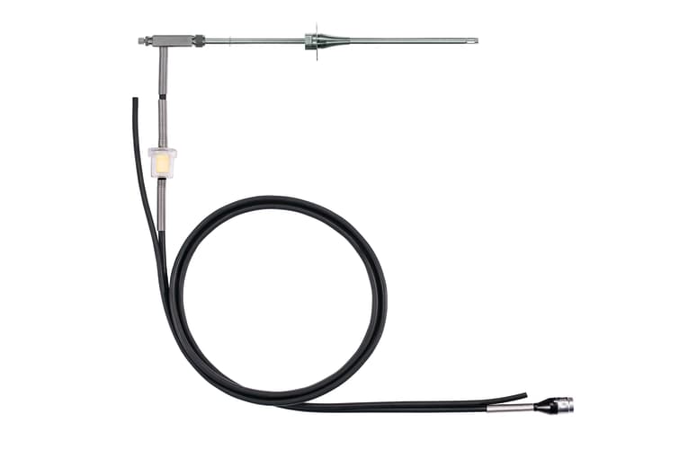 – Unidad de Control testo 350 con pantalla gráfica de fácil lectura; es el elemento que sirve para controlar el analizador. Su manejo es muy sencillo: en el menú se pueden elegir las aplicaciones «Quemador», «Turbina de gas», «Motores» y «Aplicaciones definidas por el usuario». Las indicaciones de la pantalla le guiarán a través de la medición deseada y simplificarán los pasos de trabajo hasta el comienzo de la medición, ahorrando así tiempo y esfuerzo. Con la Unidad de Control podrá además controlar a distancia la caja analizadora incluso habiendo una separación espacial entre la chimenea y el lugar del ajuste, algo especialmente recomendado en caso de mediciones de emisiones en instalaciones grandes.